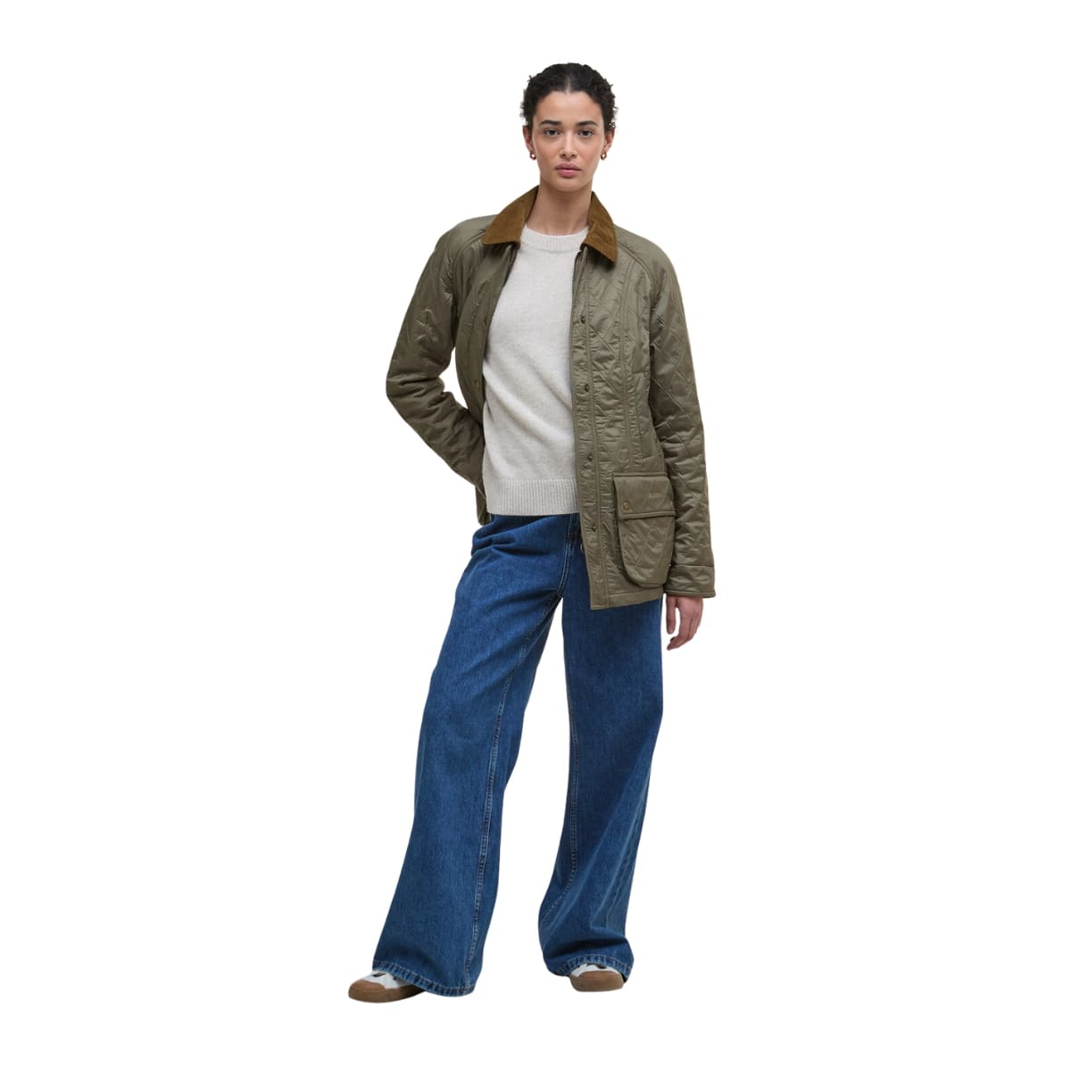 Die Barbour Beadnell Polarquilt Jacket ist eine vielseitige, mit Fleece gefütterte Jacke, die Komfort und Stil über drei Jahreszeiten bietet. Das diamantsteppte Design hält warm, während der Cordkragen mit abnehmbarem Riegel und der Reißverschluss mit Sturmblende den Wind abhalten. Handwärmtaschen und aufgesetzte Taschen bieten praktischen Stauraum, und der doppelte Rückenschlitz mit Druckknöpfen sorgt für optimale Bewegungsfreiheit. Tragen Sie darunter einen warmen Barbour Strickpullover und kombinieren Sie ihn mit einem stilvollen Barbour Schal für einen kompletten, gemütlichen Look. Legendäre Barbour-Qualität trifft auf Alltagswärme.