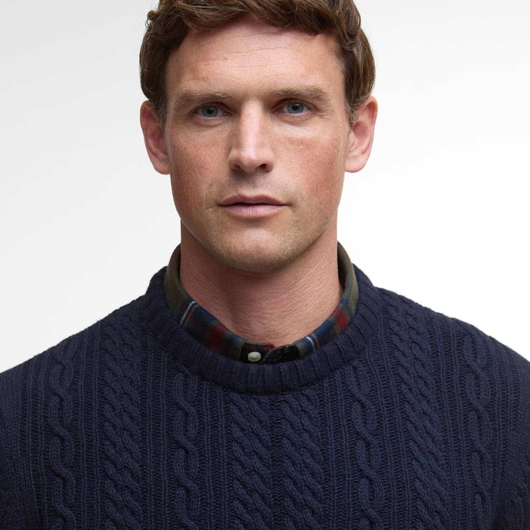 Barbour Lowfen Cable Knit Jumper Navy, Bestellen Sie bei Beaubags, autorisierten internationalen Barbour-Händler und ihr Barbour-Spezialist in Europe. Persönliche und fachkundige | Beratung | Sofort verfügbar | Kostenloser Versand und Rücksendung | 60 Tage Rückgaberecht.