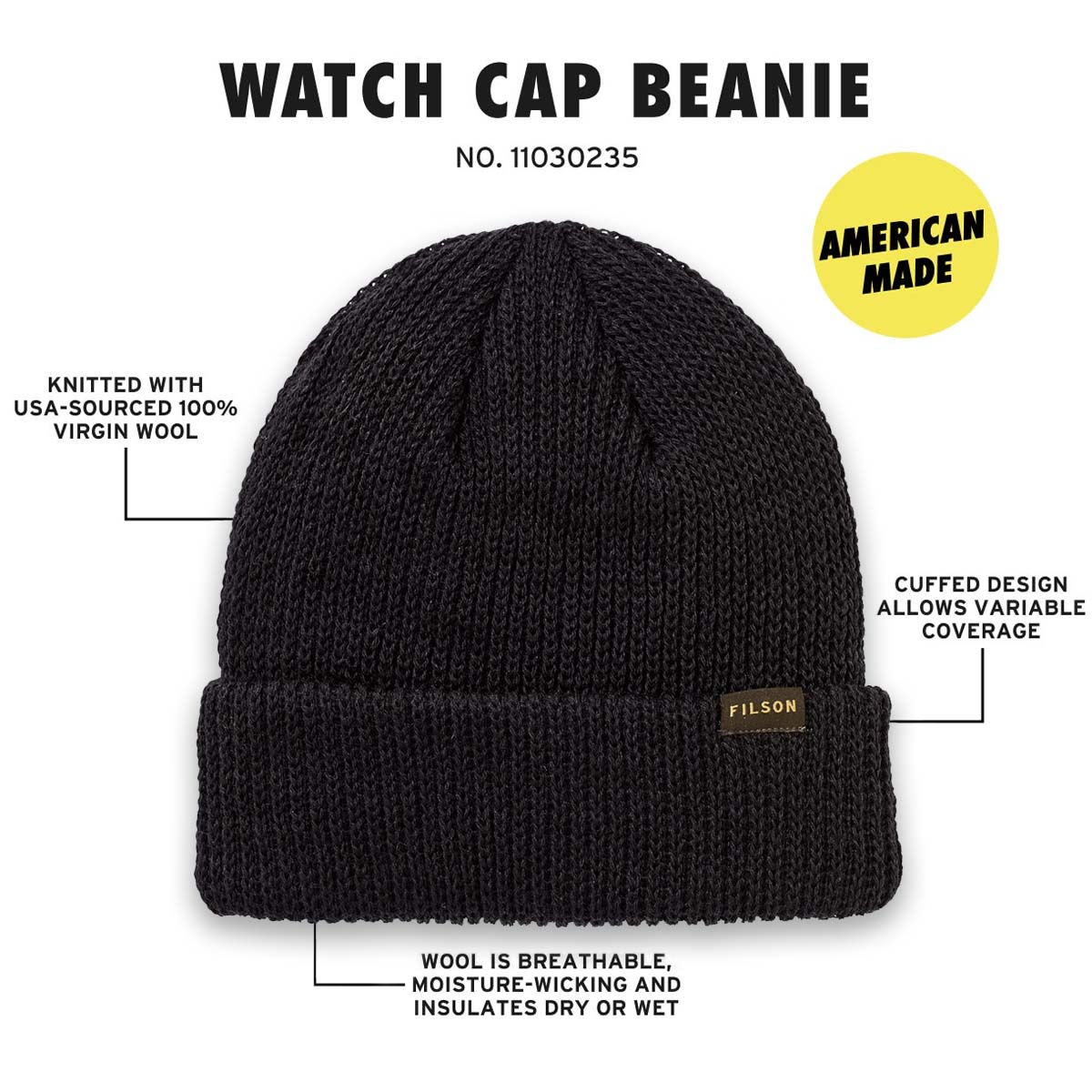 Filson stellt seit 1897 Taschen und Kleidung her. Auf diese Weise wissen sie genau, was sie tun. Filson verwandelt unverwüstliche Materialien in feste und solide Accessoires, die Sie bei jedem Wetter perfekt schützen. Die Filson Wool Watch Cap Beanie sind da keine Ausnahme.