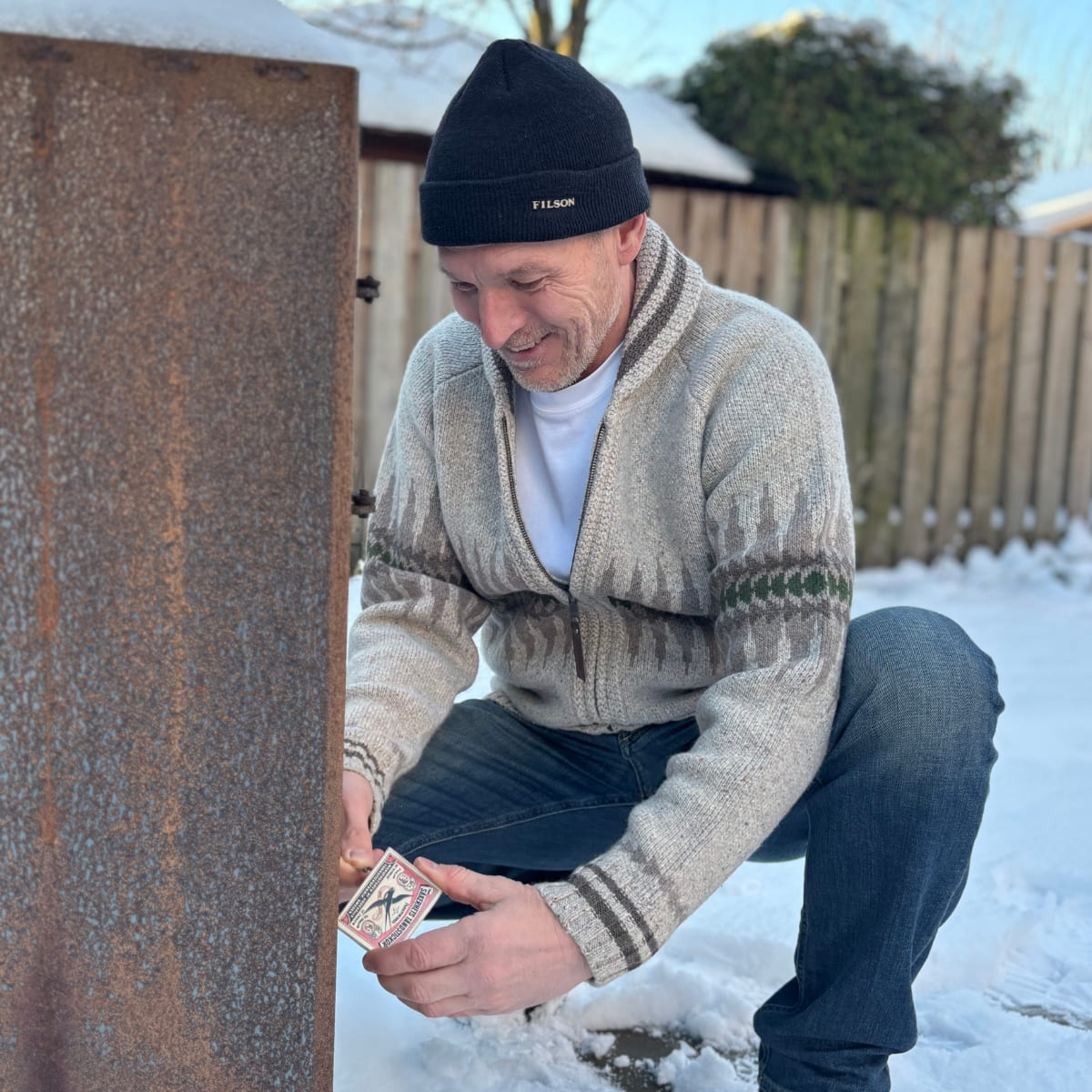 Die Western-Style-Strickjacke kann leger über einem Basic-T-Shirt oder Hemd getragen werden, wie z.B. einem Filson Flanellhemd. Kombinieren Sie sie mit dunklen Jeans und einem Paar Red Wing Schuhe für einen mühelosen, stilvollen Look.