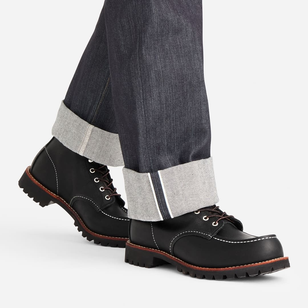 Der Red Wing 2949 Roughneck Moc Toe Boot Black Oil Slick ist inspiriert von einem Stiefel, der ursprünglich Mitte des 20. Jahrhunderts für Arbeiter auf Ölfeldern gefertigt wurde.