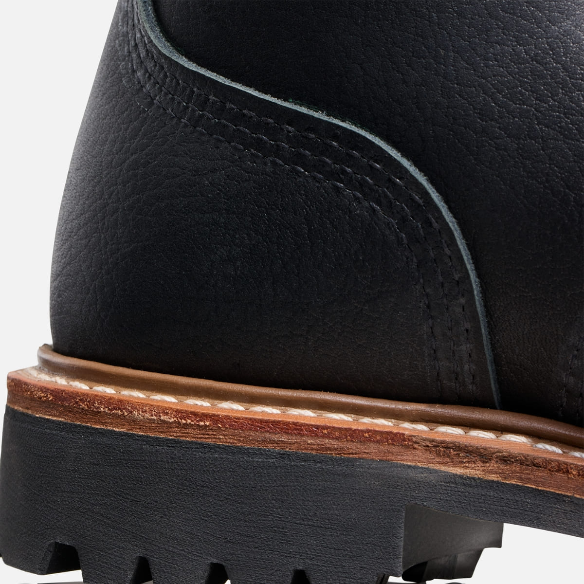 • Material: Das Black Harness Oil-Leder des 4501 Logger ist ölgegerbt und minimal behandelt, was ihm ein robustes, natürliches Aussehen verleiht. Oil-Tanned Leder ist außergewöhnlich langlebig sowie wasser-, schmutz- und schweißabweisend.